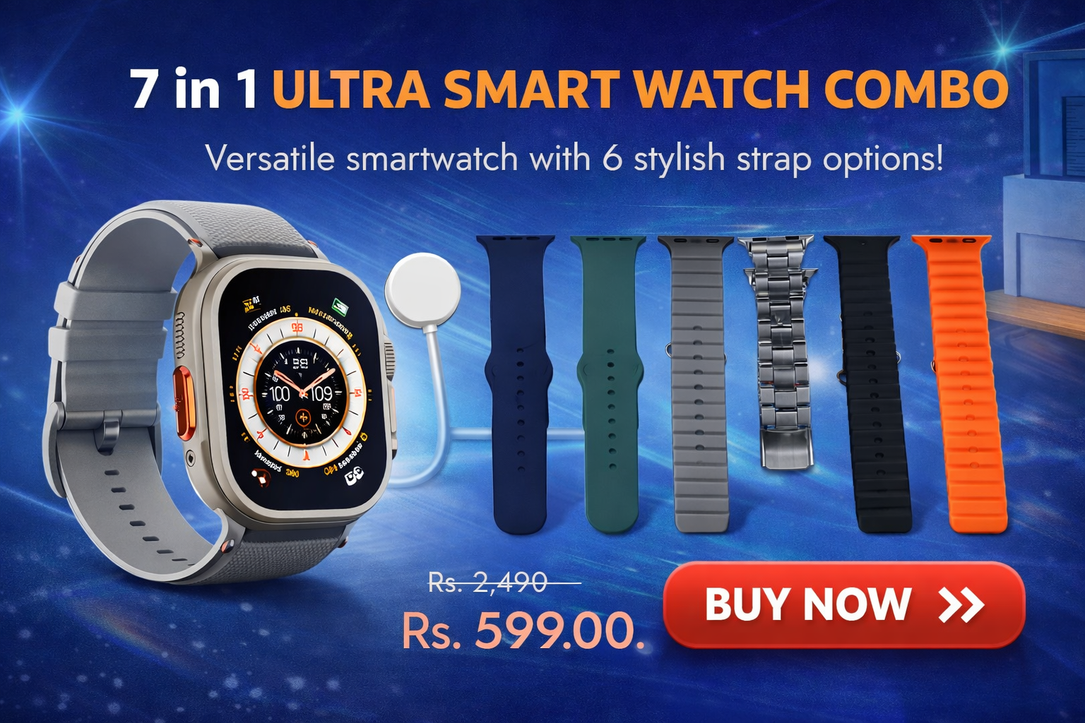 7 in 1 Ultra Smart watch Combo (1 Set / Mix Color)